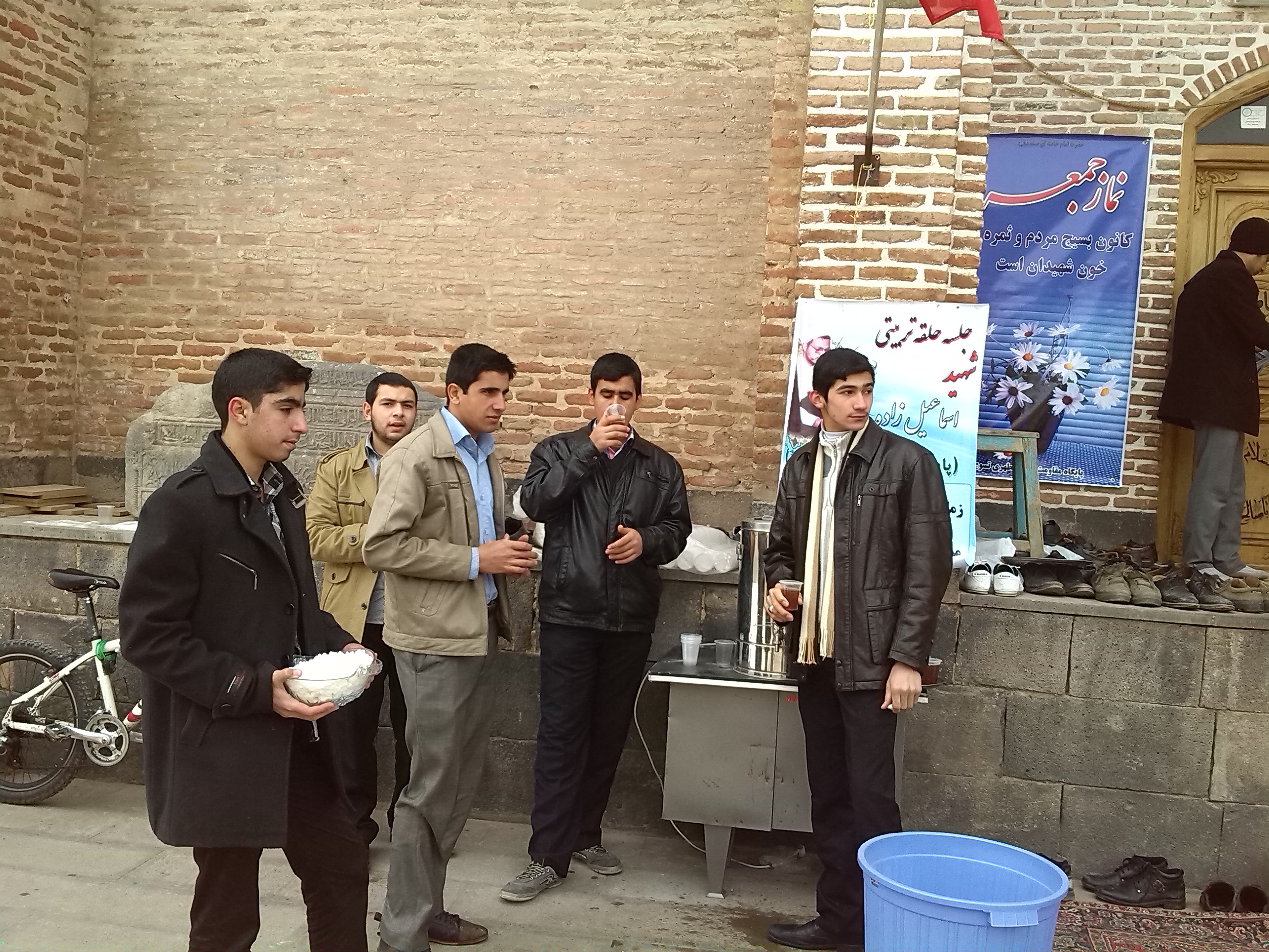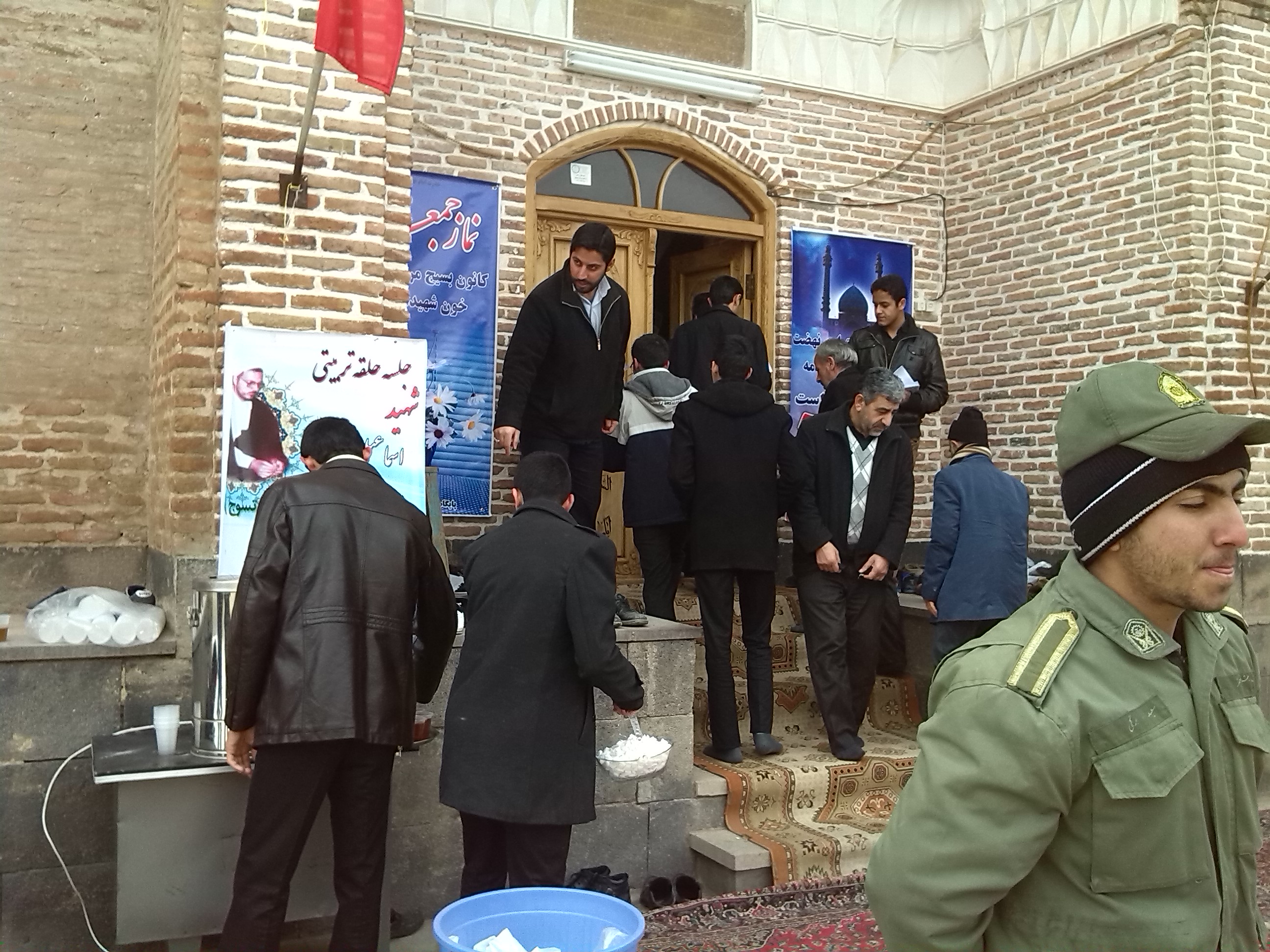 گزارش تصویری ، برپایی ایستگاه صلواتی و پخش بروشور در مسجد جامع تسوج به مناسبت شهادت امام حسن عسگری(ع) و نماز جمعه توسط اعضای حلقه.92/10/20